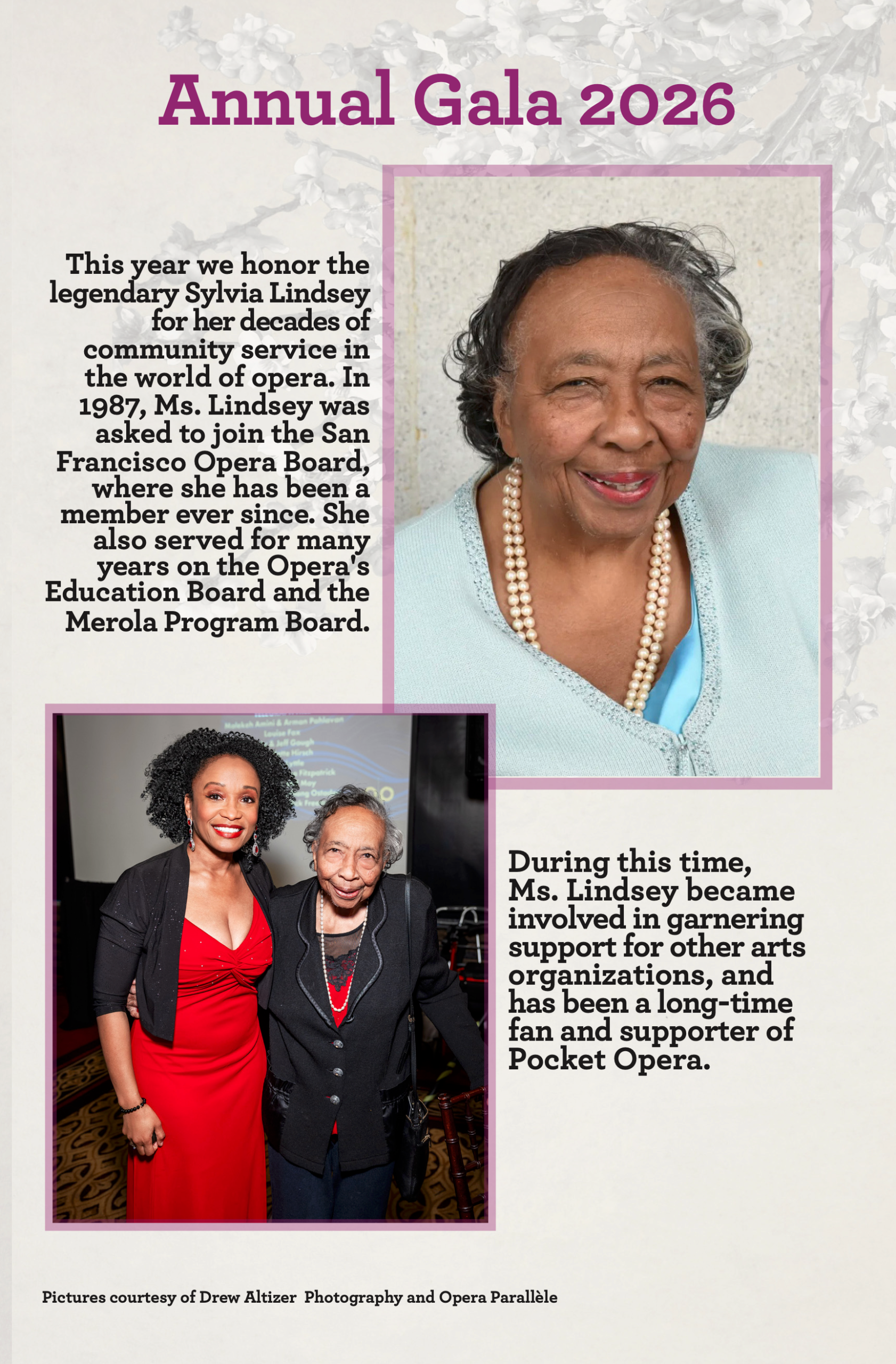 Join us for Pocket Opera’s most fun fundraiser of the year – our annual gala. We return to the University Club for a delightful afternoon featuring delicious food, wine, an exciting auction with great prizes, and music from Pocket’s finest artists.